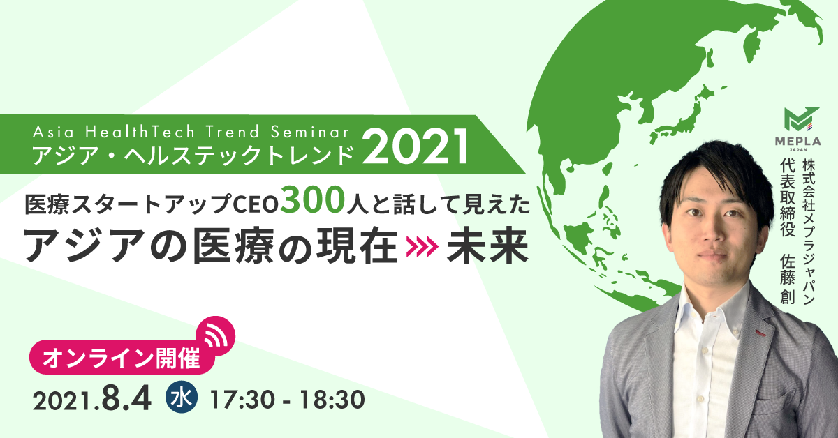 8月4日、アジア・ヘルステックトレンドセミナーの第一弾イベントを開催しました。「アジアの医療の現在・未来」をテーマにメプラジャパン代表の佐藤が登壇しました。