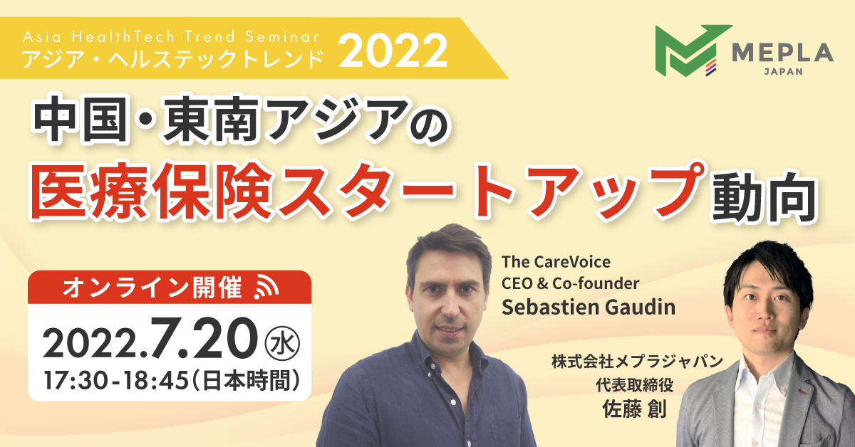 第11弾では「中国・東南アジアの医療保険スタートアップ動向」をテーマに、The CareVoice CEO & Co-founder の Sebastien Gaudin氏に、ご登壇いただきます。
