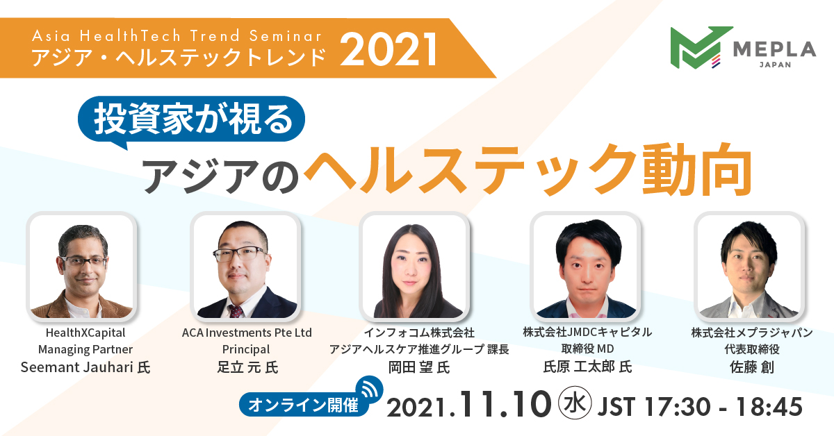 「アジア新興国のオンライン診療動向」ウェビナー開催報告2021年10月7日ウェビナー開催のお知らせ「投資家が視るアジアのヘルステック動向」(11/10)2021年10月22日 2021年10月12日 「次世代ヘルスケアプロジェクト2021」セミナー登壇予定(11/24) 代表の佐藤が、2021年11月24日に東京ビッグサイトで開催されます展示会「次世代ヘルスケアプロジェクト2021」のセミナーに登壇いたします。「アジアのヘルステック事情と今後の展望 ~コロナにより加速するアジア各地の医療DX~」をテーマに講演させていただきます。セミナーの詳細はこちらのリンクよりご参照ください。登壇日時:2021年11月24日13:00(日本時間)お申込方法:こちらのリンクよりご登録ください(参加費無料)主催:一般社団法人日本能率協会 Share Related posts「介護テック×アジア新興国 ~インド・南アジアの在宅医療・介護プラットフォーム~」開催報告Read moreセミナー開催のお知らせ「介護テック×アジア新興国 ~インド・南アジアの在宅医療介護プラットフォーム~」(5/24)Read more「web3 × Healthcare 」セミナー開催報告Read moreセミナー開催のお知らせ「web 3 × Healthcare ~医療分野におけるweb3活用の可能性~」(3/22)Read more